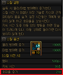 " 물리/마법 공격을 회피할 확률이 수치만큼 증가합니다 "