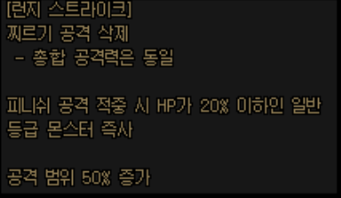 깨알같이 낮은 체력의 일반 몬스터를 처형하는 효과도 있습니다만, 의도하고 쓰는 경우는 잘 없긴합니다.
