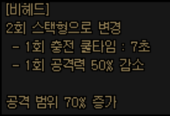 비헤드의 범위를 매우 크게 증가시키고, 스택화로 만듭니다.