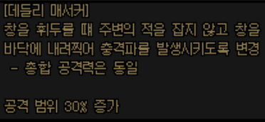 장판 데미지가 첫 타격에 합쳐졌다면 범위 증가의 크루얼 매서커와 대비하여 공격속도라는 장점이 있었을텐데 아쉬울 따름입니다.