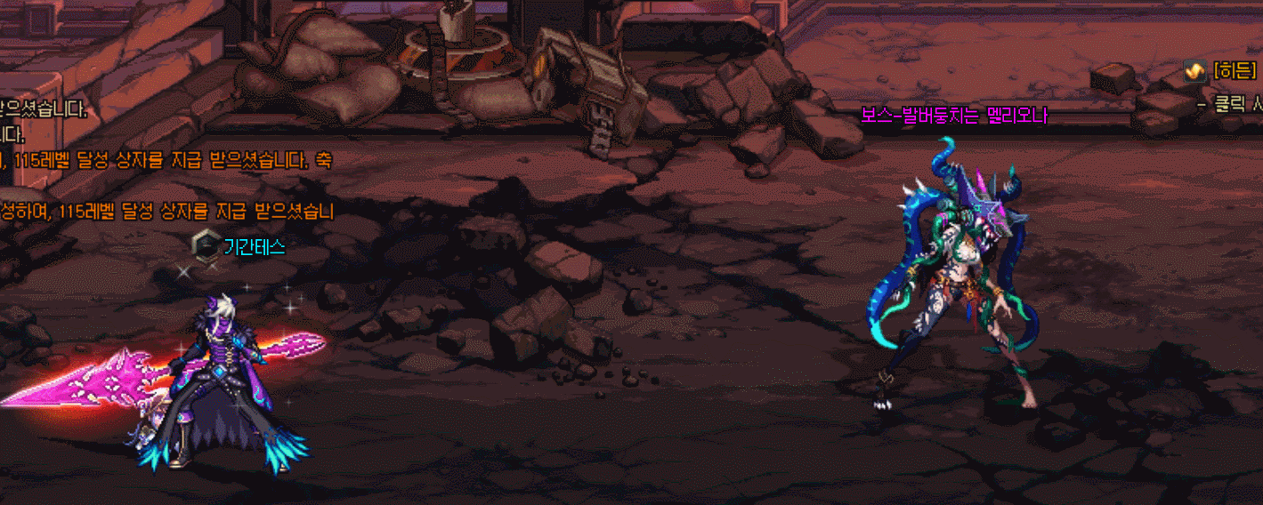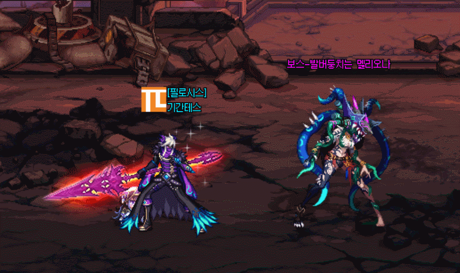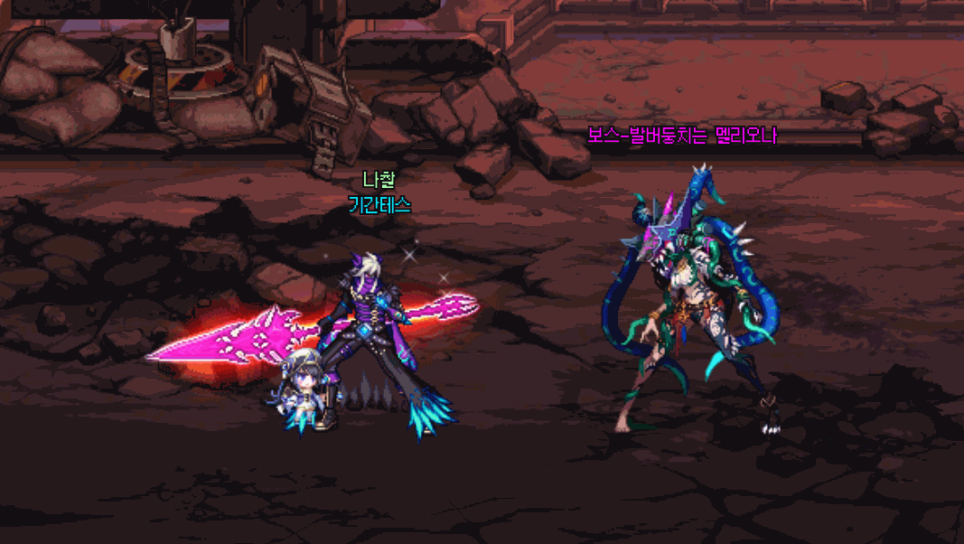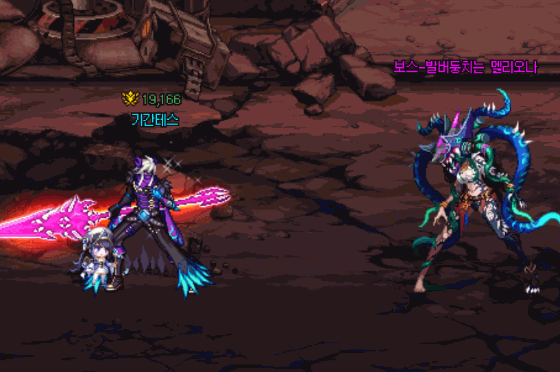 타격시 전방 임팩트 스매시를 시전하면 넘어갈 정도로 몹과 완전히 겹친 상태가 됩니다.