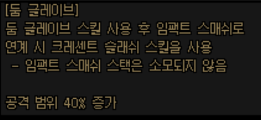 둠 글레이브 이후 연계되는 임팩트 스매쉬가 크레센트 슬래쉬의 모션으로 나갑니다.