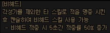 타 스킬-비헤드의 연계가 가능하게 됩니다. 그런데 비헤드에서 다른 스킬로의 연계는 또 안됩니다.