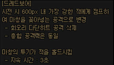 드레드보어의 범위가 상당히 커지고, 몹몰이 효과를 추가합니다.