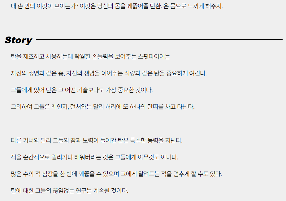 공식홈페이지에 기재된 남스핏파이어 스토리