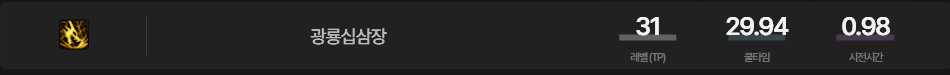이유를 설명하자면, 우선 광룡십삼장의 기본 쿨타임은 30초이지만