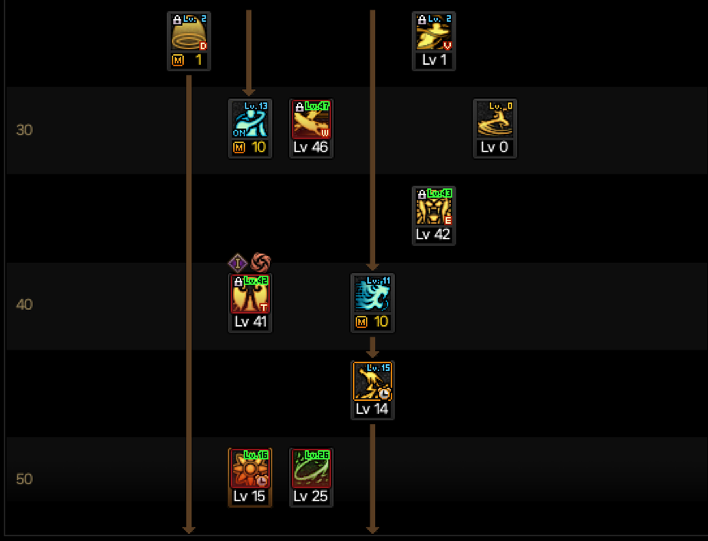 이 항목은 베누스 고유 융합석 5개가 모두 있다는 기준이며, 조금이라도 던담 딜을 더 높이고싶은 사람들을 위해 작성했습니다. 기옥탄과 뇌전격은 풀히트하는 시간이 길거나 강제 이동으로 인한 타점변경의 불쾌감 때문에 채용하지 않았습니다. 제 스킬트리 기준이며, 따라서 독자적인 스킬트리를 사용하거나, "현실적으로 어려워도 던담딜이 높은게 좋다" 라는 분들은 읽지 않고 넘어가도 무방합니다.
