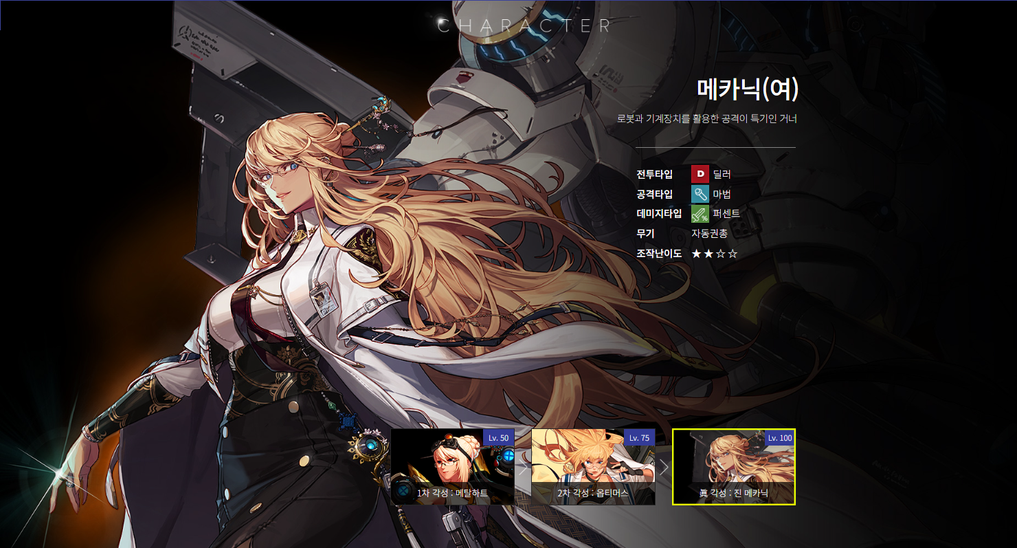 출처 : 던전앤파이터 공식 홈페이지 메뉴 - 캐릭터 >> 여거너에서 메카닉 선택