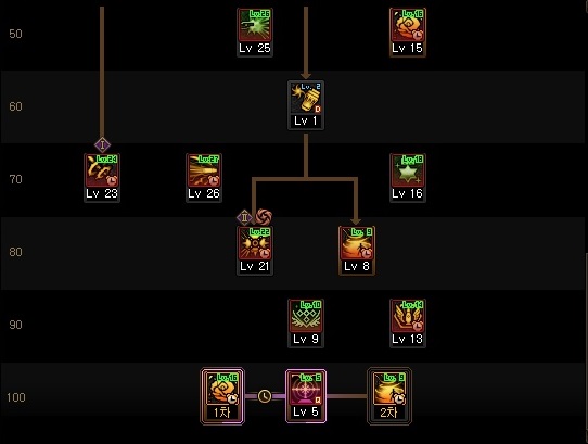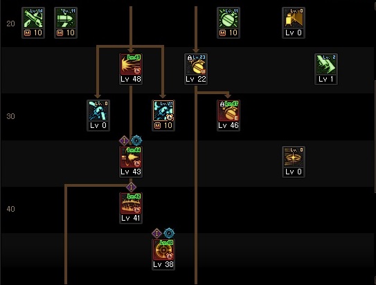 제 스킬트리를 복사하시면 리턴드 스나이퍼, 버스터샷, 반응류탄 강화가 찍혀있을 텐데 저는 나벨 특수장비 고유융합석 때문에 반응류탄을 채용했지만, 나벨 특수장비 고유융합석이 없으시다면 버스터샷, 네이팜탄, 리턴드 스나이퍼를 채용하시는게 딜 상승량이 제일 높습니다. 스킬 공격력 증가를 채용할지 스킬 공격력 증가와 쿨타임 감소를 채용할지는 역시 외부 사이트를 참고하셔서 더 데미지가 높은 쪽을 선택하시면 됩니다. 칠흑의 정화 세트가 아니라면 쿨타임 감소 옵션 채용시 사용 횟수가 증가한다면 보통 더 데미지가 높습니다.