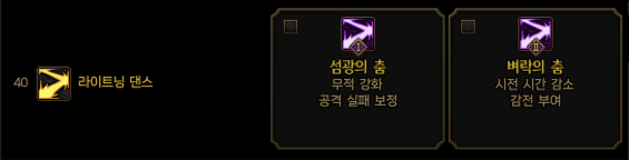 다른 직업들에 비해서 무적기라고 해봤자 40제와 95제 두 개뿐이지만 특이한 점은 라이트닝 시프트의 후속을 제외하고서는 전부 서로 연계가 가능하다는 겁니다.