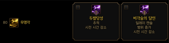 이걸 활용하기도 힘들뿐더러 큰 장점은 없지만 시전시간 감소로 인한 딜압축과 대쉬기로 사거리 보완을 챙길 수 있어 채용했습니다.