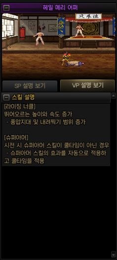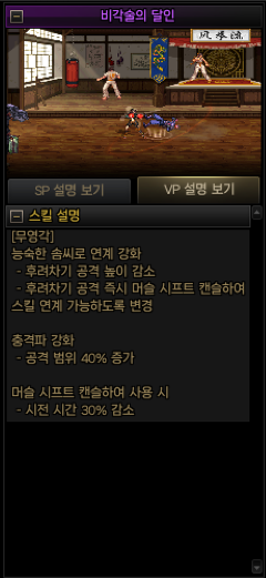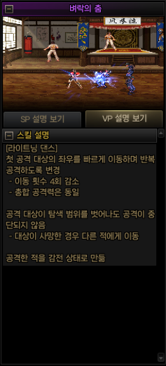 아무튼 이렇게 연계하실 때 주의하실 점이 하나 있는데 위에서 언급한 거처럼 라이트닝 시프트의 후속 올려차기에서 무적을 연계하려면 백스탭강화와 진각성만 가능합니다.