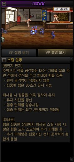 - 기본기3종 (붕권, 본크러셔, 철산고)