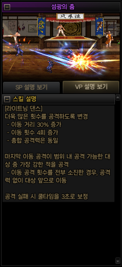 이로인해 기존의 라이트닝 댄스의 문제점인 타격대상이 스킬시전도중 순간이동하거나 사망할 경우 캐릭터의 위치가 위의 상황처럼 뒤쪽으로 지정되는 경우가 없어집니다.