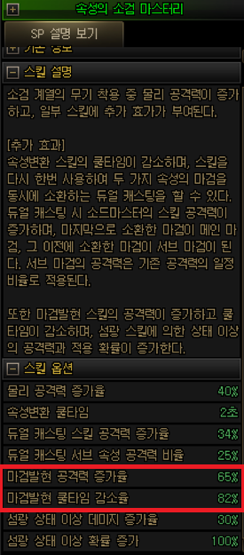 속성의 소검 마스터리는 속성 변환을 통해 두 가지 마검을 동시에 소환이 가능하게 하며, 마검 발현의 공격력이 증가하고 쿨타임이 크게 감소합니다. 소검 소마의 핵심이라 할 수 있습니다.