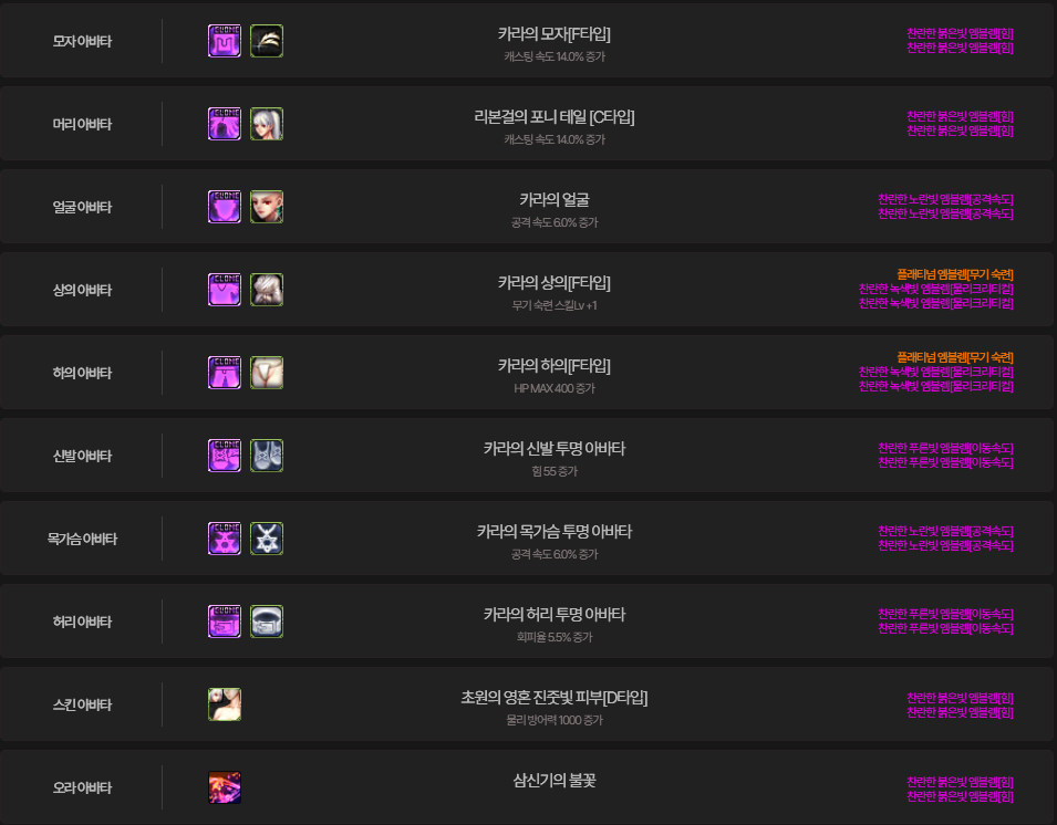 3.2 추천 세트 장비