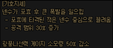 위에서는 무색 큐브조각 사용 스킬에 광풍나선력 추가타가 있다고 말씀드렸는데, 사자후는 예외적으로 추가타 없이 기절 상태이상을 추가로 부여합니다.