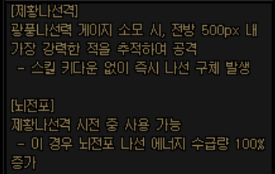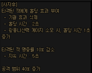 깨알같이 암흑 부여가 있지만 현 시점에서는 의미 있는 기능은 아닙니다.