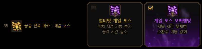 공중 전폭 메카 : 게일포스 스킬 공격력 증가(마그네틱 필드 대체 가능)