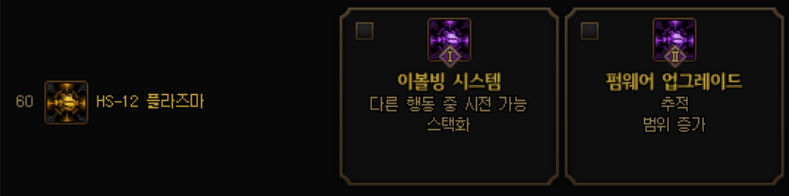 HS 플라즈마를 스택화 하고 다른 스킬 시전 시 사용이 가능하게 합니다. 굳이 채널링이 길지 않았던 HS 플라즈마의 채널링을 없애고 스택화로 스킬을 몇번 더 눌러줘야 하는 불편한 VP로 보이지만 40초 딜링 시 스택화로 인해서 스킬을 0.5회 더 사용할 수 있는 고점을 뚫어줄 수 있는 가능성이 생깁니다. | HS 플라즈마가 적을 추적하여 폭발합니다. 기존 VP 채용하지 않은 HS 플라즈마가 딱히 맞추기 어려운 스킬이 아니라 채용 비추천 |