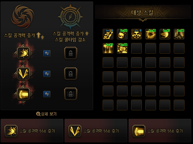 스킬 강화는 제노사이드 크러쉬 / 천공검 / 매시브 파이어 를 공격력 강화를 했는데,