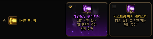 매시브 파이어는 둘 다 좋아요 1은 Y축 범위가 좀 더 넓어지고 사용감이 좋으며, 2는 딜사이클 압축에 좋습니다 역시 필수 VP라고 생각해요