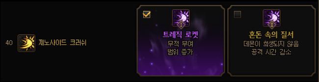 제노사이드 크러쉬는 1은 무적, 2는 데몬 사망 패널티를 무효화하는 차이점이 있는데