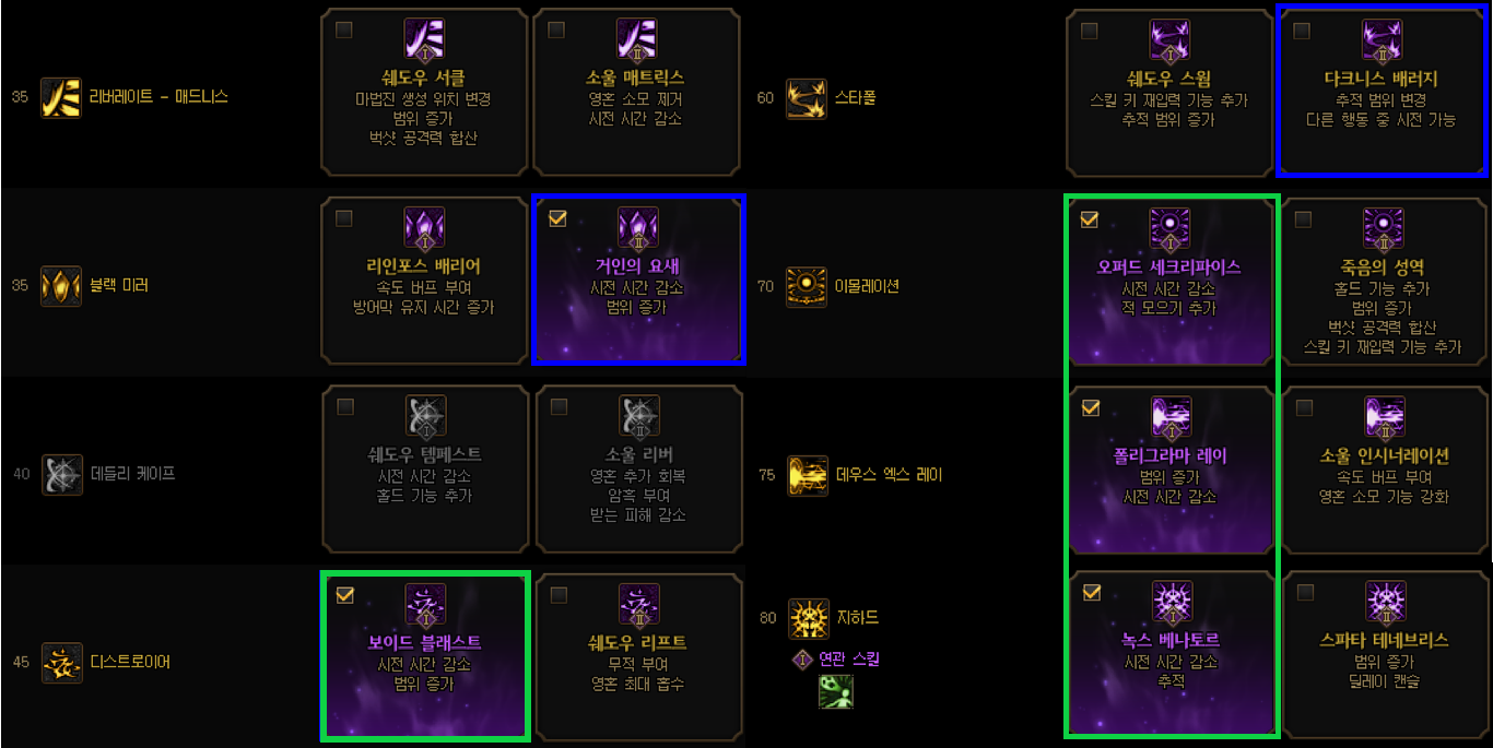 모두찍는 스킬트리 ( 칠흑의 정화 세트같은 과쿨감 상태에서만 추천합니다)