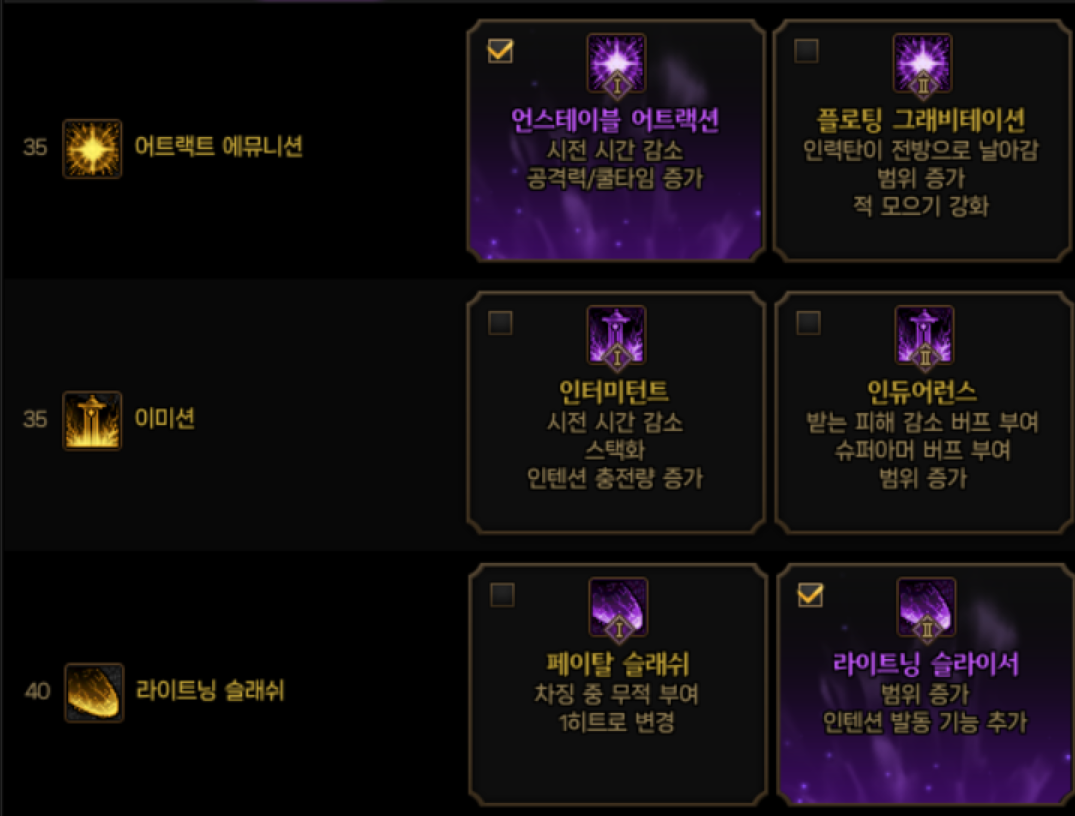 개화 1 : 언스테이블 어트랙션 (시전 시간 감소, 공격력/쿨타임 증가)