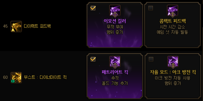 중간보스방 내려서 킥 or 다이렉트 피드백 or 남는 기본스킬