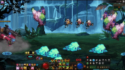 곱등이에 탄 채로 전방에 사격&폭탄을 날립니다. 세가지 스킬을 동시에 쓸수도 있습니다. 보통 잔챙이들 남을때 사용합니다.