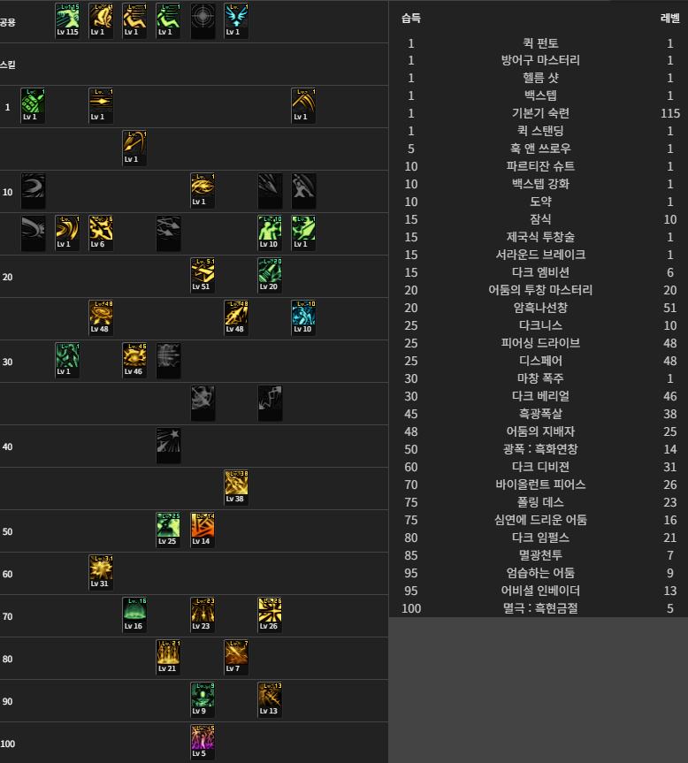 1. 칠흑의 정화 및 세렌디피티(특정 상황) 스킬트리