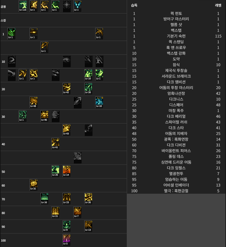 - 가장 대중적이고 범용적으로 쓰이는 스킬트리로, 어느 세팅으로 사용하더라도 안정적인 포텐셜을 자랑하는 스킬트리라고 생각합니다.