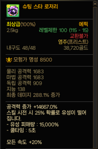 80제 염폭모대주의 경우 공격 시간 감소를 통해 시전 시간 감소 효과 및 공격 시간 감소를 통해 적에게 데미지를 확실하게 넣을 수 있는 강점