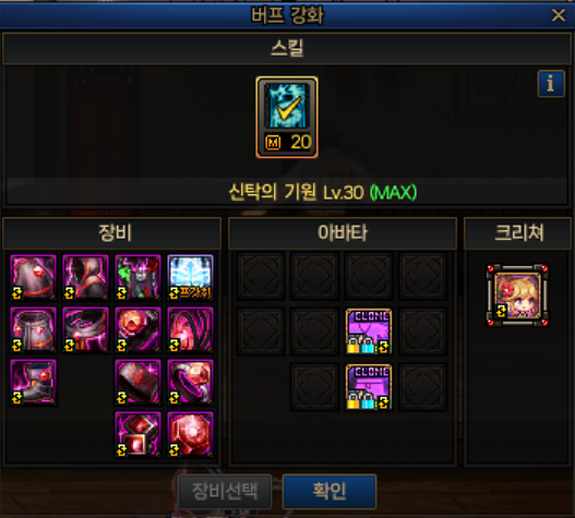 버프 강화는 신탁의 기원을 올려주어야 합니다.