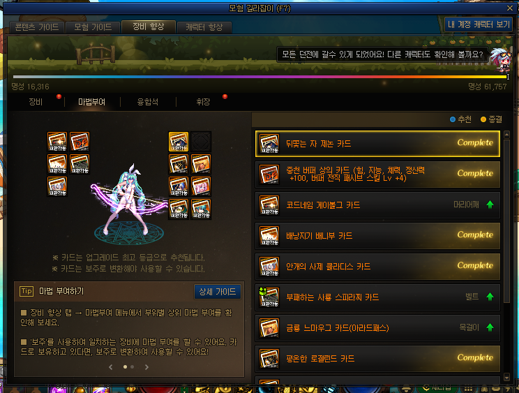 ESC-모험길라집이-장비향상 탭에서 종결 마부를 바로 알 수 있습니다.