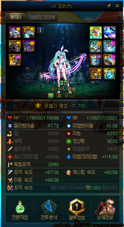 뮤즈의 버프력이 정신력 비례라 다음 설명할 러블리 템포를 사용하기 전에 먼저 사용해주셔야 합니다.
