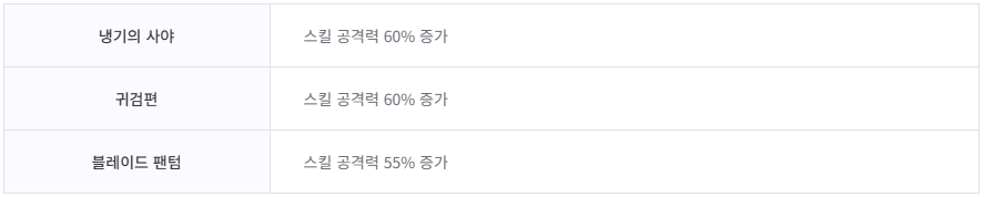 - 칠흑 : 높은 쿨타임 감소도 충분히 소화 가능
