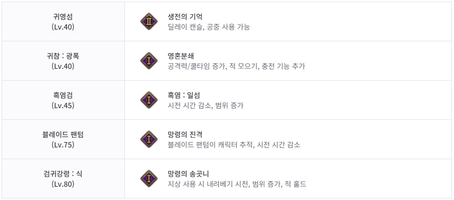 기존에 사용하던 30, 75, 45?렙 스킬에 35, 40렙 스킬까지 선택 해서 사용할 수 있게 되어