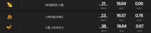 던파는 커맨드 사용시 추가 쿨타임 감소가 설정되어있는데 45제인 스톰스크라이크는 2%, 80제인 바이올런트 스톰은 5%라서