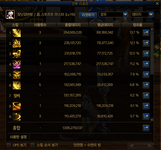 짜잔 던담에서 멋진 딜표를 확인 할 수 있습니다. >> 실제로 운용이 가능한가요?