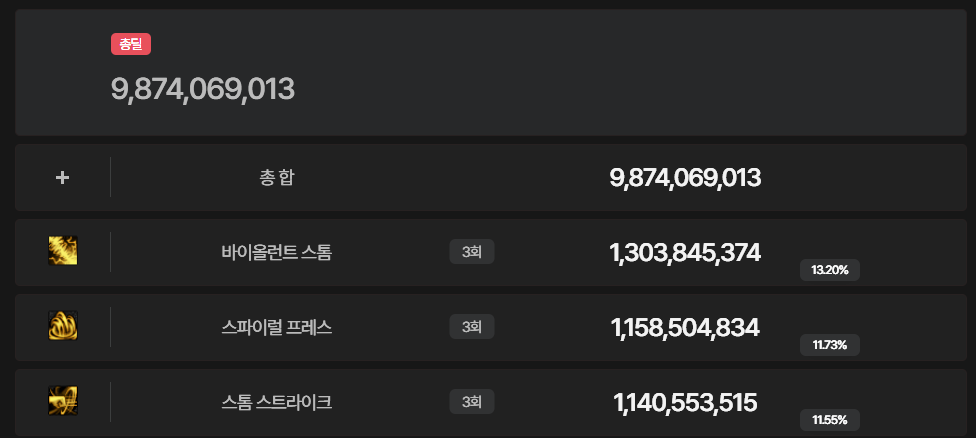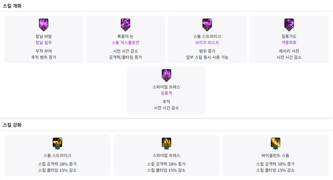 이 경우 스파이럴프레스 스킬강화를 순수 스킬데미지증가 55%로 바꾸는 것이 스킬횟수와 데미지를 모두 챙길 수 있습니다.