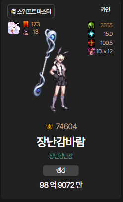 스위프트마스터는 남마법사 물리 퍼센트 데미지 딜러 직업입니다.
