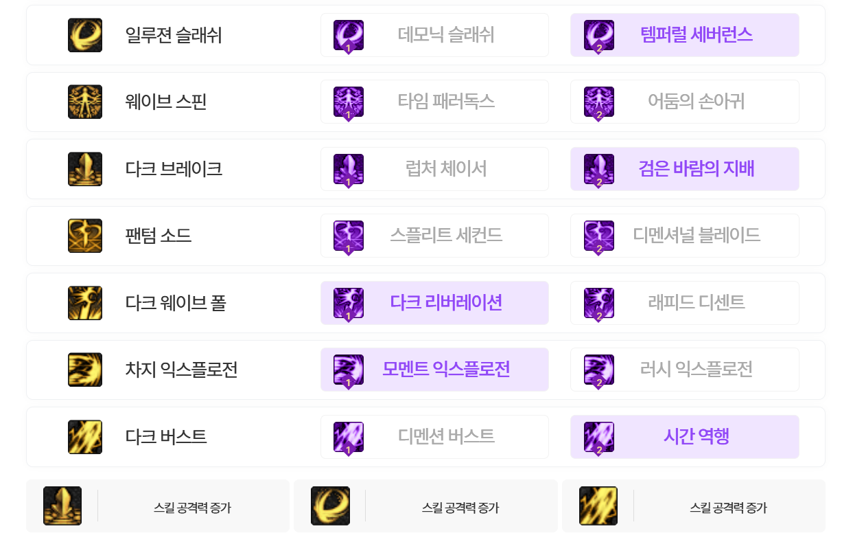 재료스킬 사용하는 시간 0.5초 감안해서 다크 버스트 콤보를 일루젼 슬래쉬 콤보보다 의도적으로 0.5초 길게 배치해 쿨타임 누수 없게끔 콤보 배치하였음