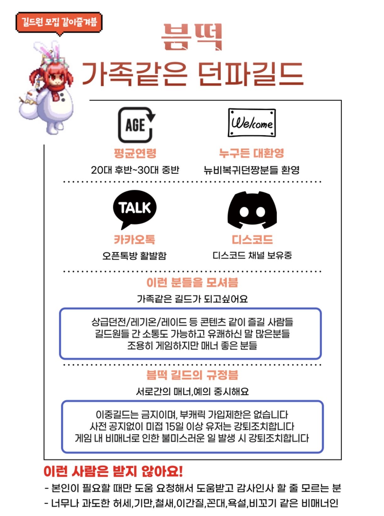 [공통] [븜떡] 길드에서 인사성 밝은 길드원 모집해욧 천해천 정보 공유하며 즐기실 뉴비/복귀/던짱/다캐릭유저 대환영 -즉시가입-!