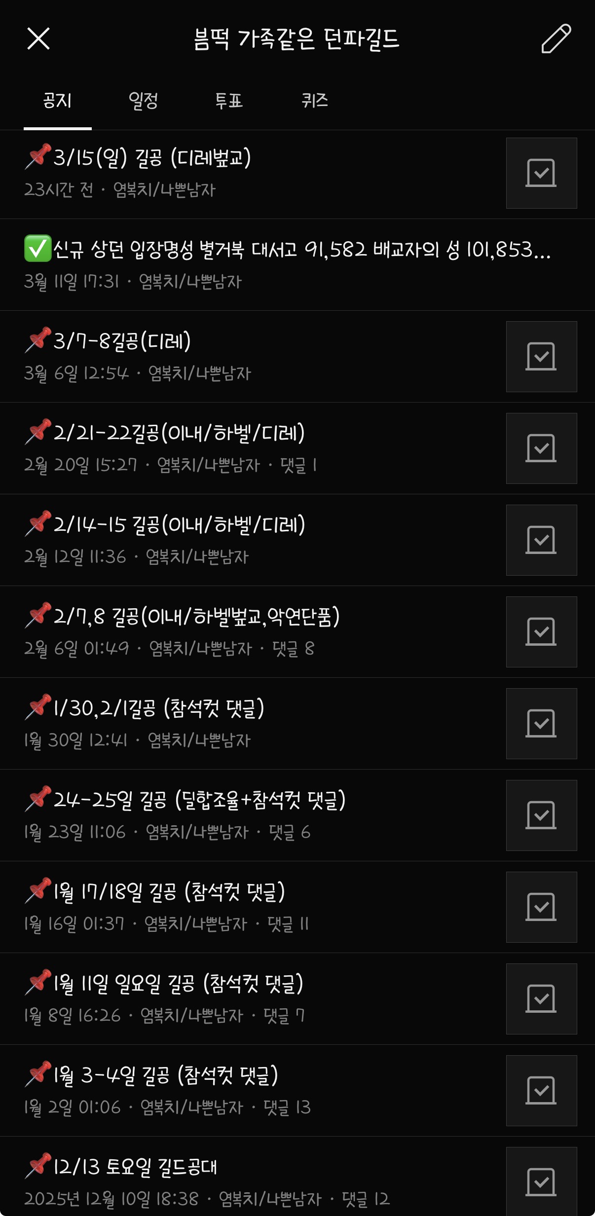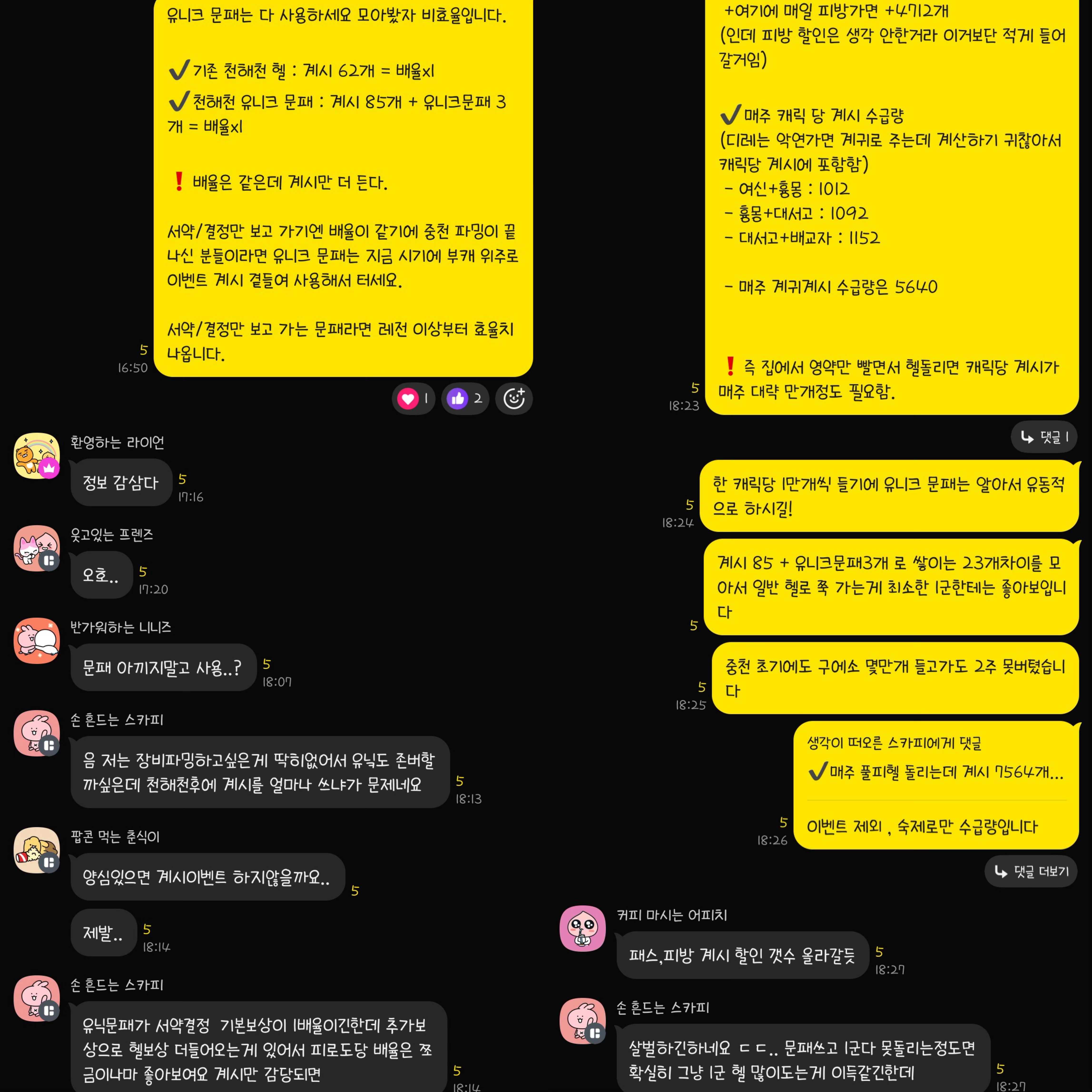 - 길드챗 또는 톡방으로 얘기 맞춰 숙제 빠르고 같이 끝내요(서로업둥도해줌)