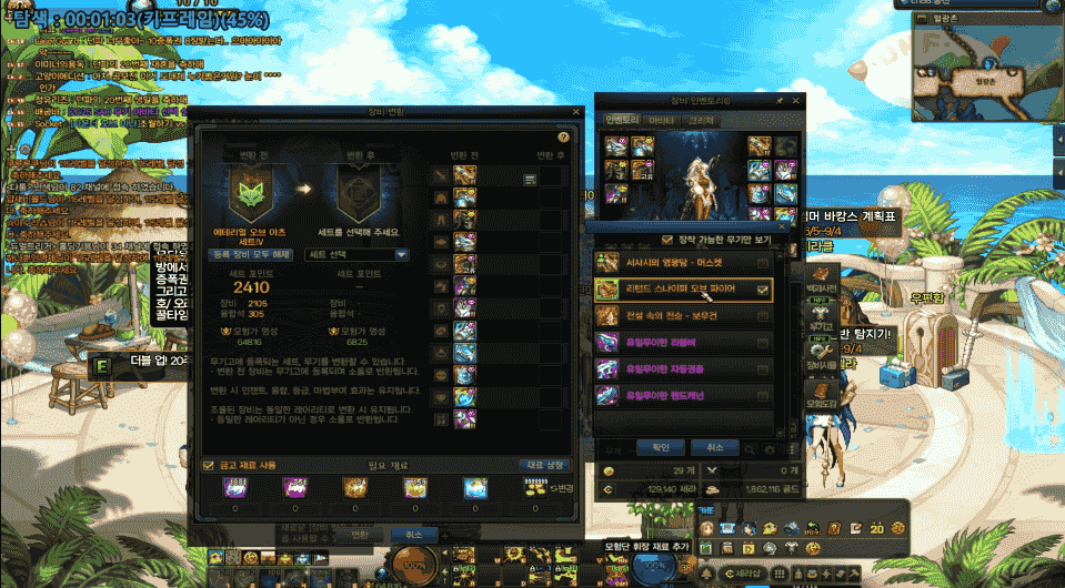 점핑무기 선택 장비 변환 변환 후 무기에서 본인이 착용할 무기 선택 변환