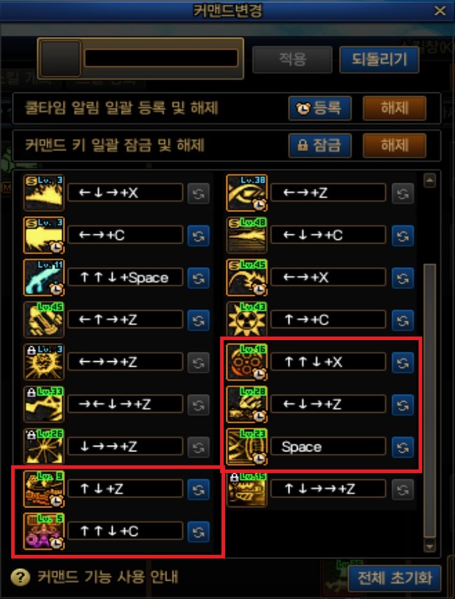 기왕이면 각성기 3개, 특랜, 하나 더 넣는다면 공기팡 정도는 커맨드를 쓰면 어떠실까 하는 조언아닌 조언 해봅니다.