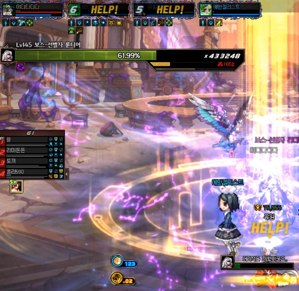 패턴 실패로 인한 즉사 패턴이 아니면 죽을 수가 없었고 즉사 패턴이라 하더라도 1% 체력으로 부활하는 융합석으로 버텨서 모두를 부활 시킬 수 있었습니다.
