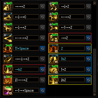 제가 말씀 드린대로 커맨드를 지정하셨다면 방향키와 Z키만으로 주요 딜링기를 모두 넣으실 수 있습니다.